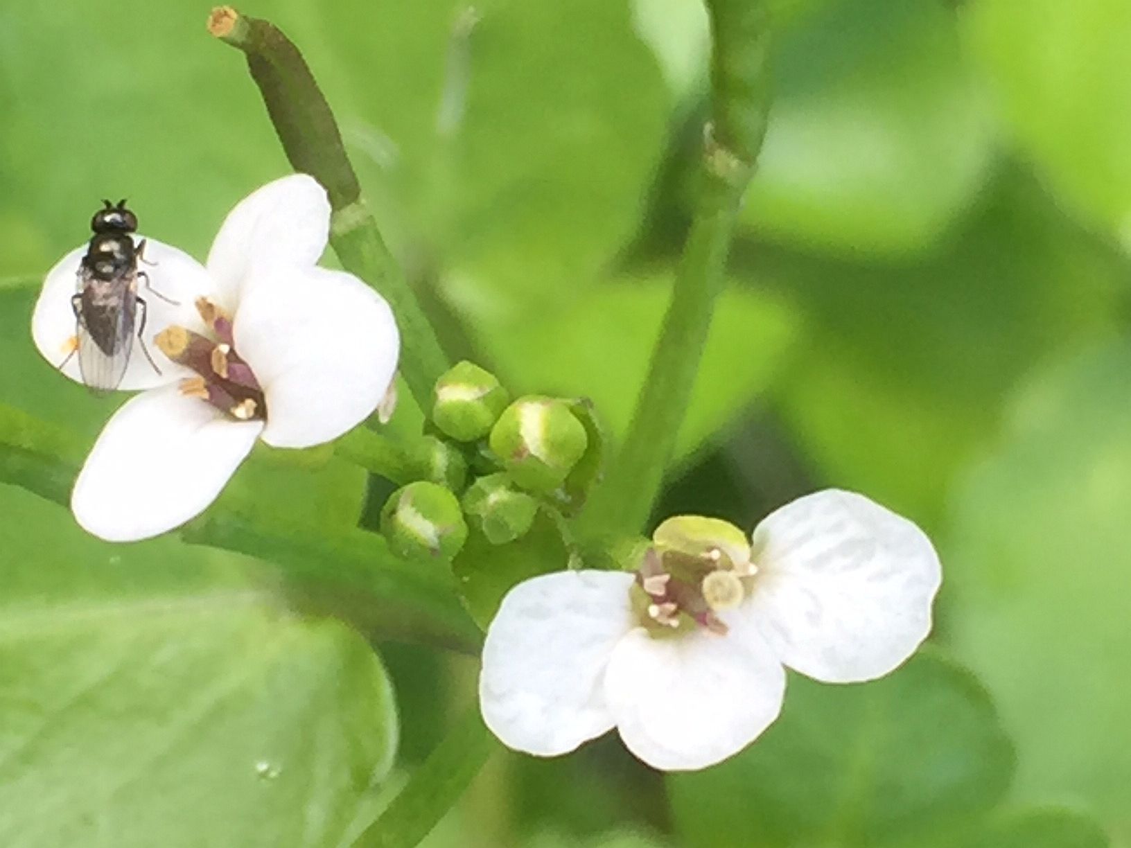 Den 13 september fick jag ett meddelande från min vän Tomas Lundqvist tillsammans med en bild på en växt som han hade påträffat i utloppet ur Norra Bergundasjön. Han misstänkte att det rörde sig om källfräne Nasturtium officinale. Med hjälp av bilden kunde jag konstatera att det med största sannolikhet rörde sig om denna växt och dagen efter kunde jag vid besök på växtlokalen bekräfta att det verkligen var källfräne. Det rörde sig om ett mycket välutvecklat bestånd på åtminstone 2 kvadratmeter intill den södra stranden av Bergunda kanal endast ett 20-tal meter från utloppet ur Norra Bergundasjön. Förutom den täta bladmassan fanns där flera stänglar med utslagna blommor och utvecklade frukter. I omgivningen växte bl.a. bredkaveldun och veketåg. Norra Bergundasjön tar emot avloppsvattnet från Växjö och trots att det renas i ett avloppsverk är vattnet i sjön mycket näringsrikt.